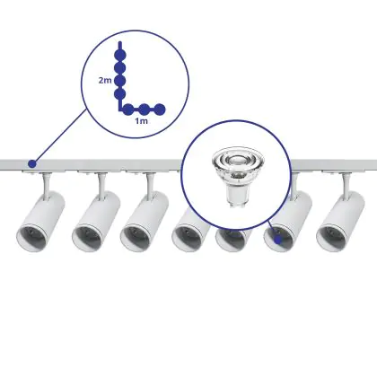Bright Choice Complete Set 1-Fase Rail L 1 x 2 Meter Wit | incl. 7x Spot + GU10 2700K 3W Dimbaar + Eindkap, Voedingsconnector en L -Verbindingsstuk