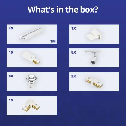 | Fabrikantnaam | Complete L shaped 1-Phase Track Set White incl. 8x Spot fixture + GU10 2700K 3W Dim – 2 x 2 meters i | |