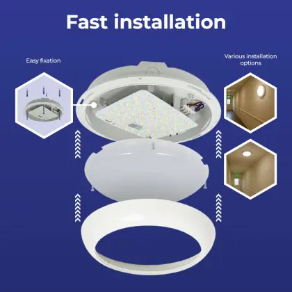 Noxion LED Bulkhead Pro V2 12/16/20W 2400lm - 830-840-865 CCT | 325mm - IP65 - Bewegings- en Lichtsensor + Ring Wit